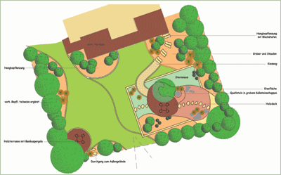 Egal ob es sich um Neuanlagen oder um Umplanungen bereits bestehender Gärten handelt: Zur Planung gehören alle notwendigen Elemente wie Pflasterungen im Vorgarten- und Terrassenbereich, die Anlage zusätzlicher Sitzbereiche, Wasser in jeglicher Form, Terrassierungen, Mauern, Treppenanlagen, Pergolen, Sichtschutz, etc. Neben der Anfertigung eines Gestaltungsplanes erstelle ich selbstverständlich auch eine detaillierte Pflanzplanung inkl. Pflanzenliste.